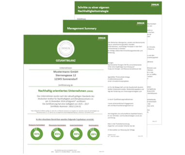 Erreichen Sie mindestens 75 % der definierten Kriterien, erhalten Sie das offizielle Zertifikat "Nachhaltig orientiertes Unternehmen (DINUK e.V.)“